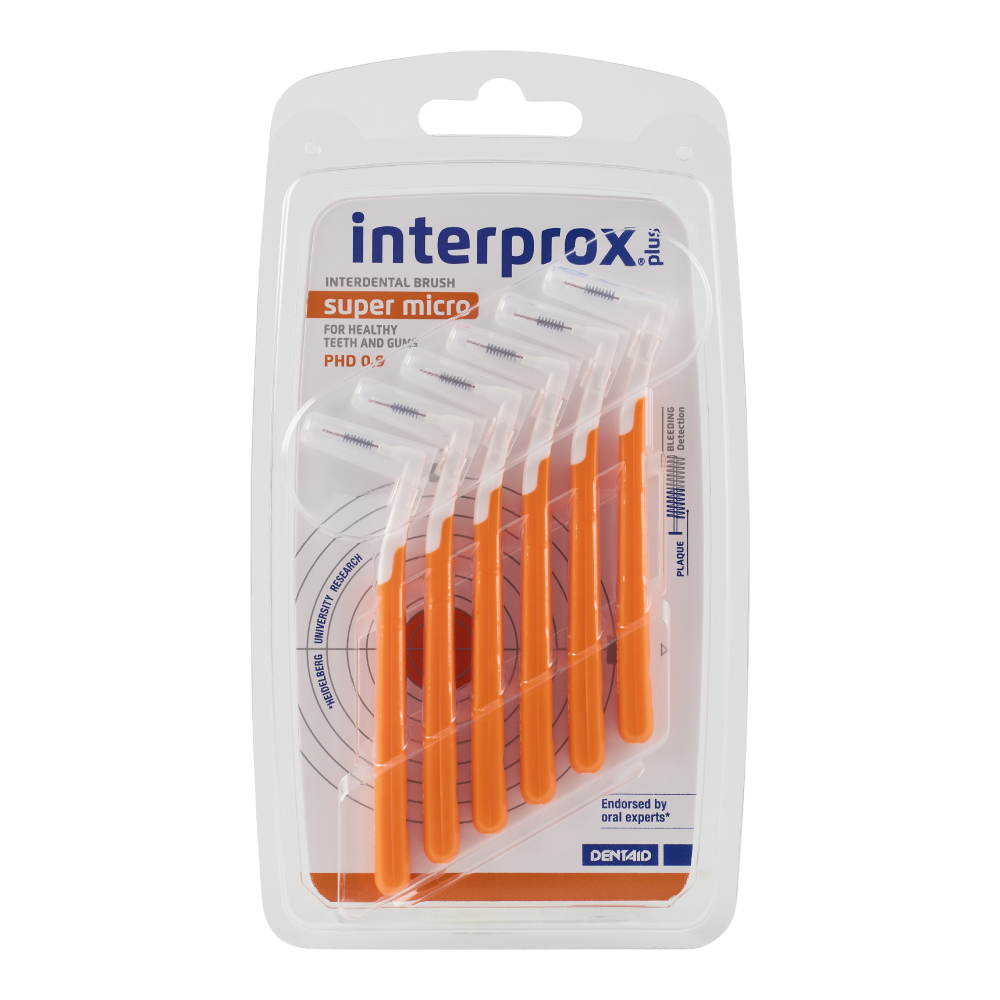Interprox® Plus Super Micro foi especialmente concebido para eliminar o biofilme oral (placa dentária) acumulado nos espaços interdentais. O tamanho da sua cabeça cilíndrica adapta-se aos espaços interdentais mais pequenos.
